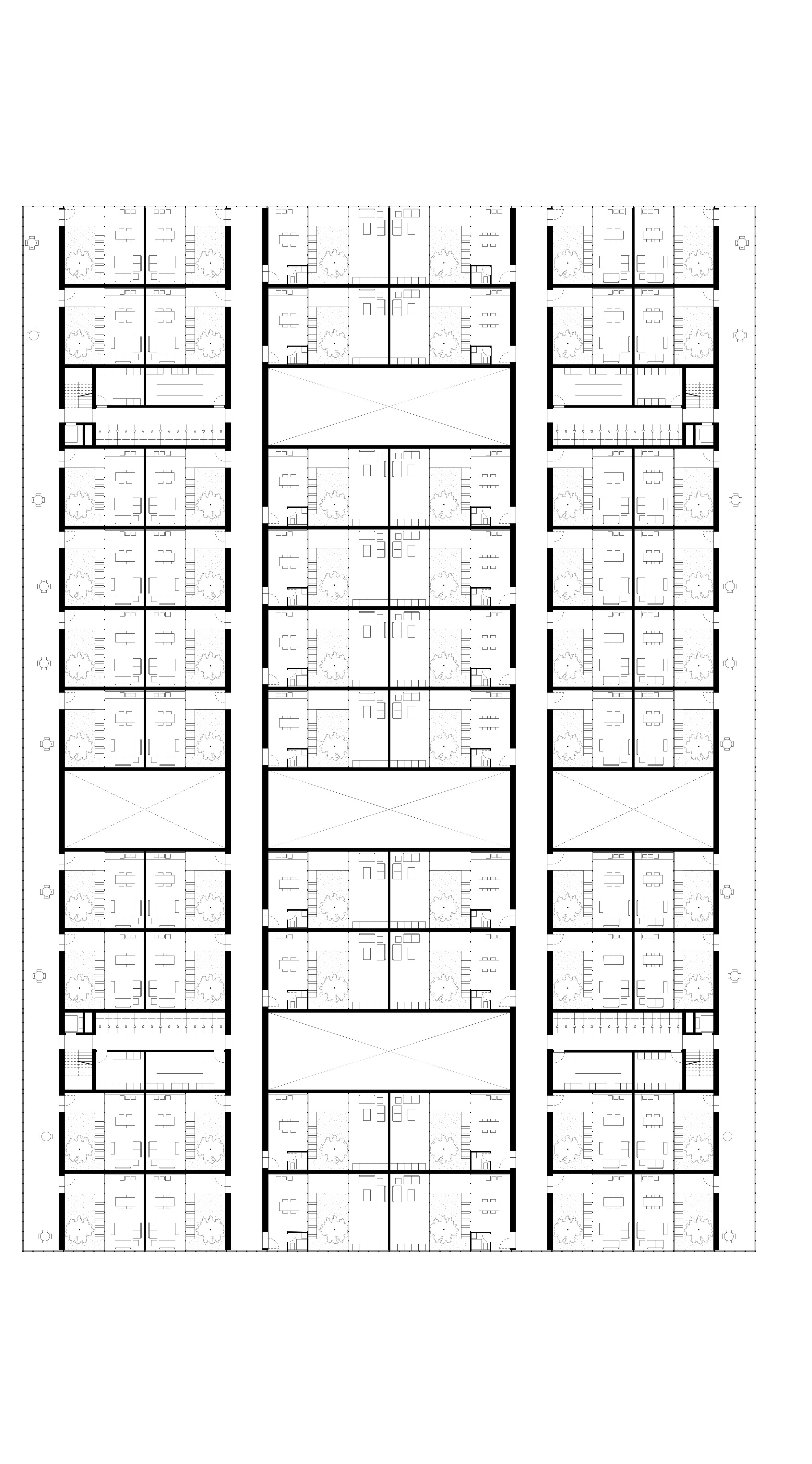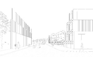 Dans le but d’injecter densité et agitation métropolitaine, chacun des bâtiments présente une dualité programmatique. On y trouve à chaque fois du logement ainsi qu’un programme annexe public dont la substance et la disposition dépend de la nature de la relation au mur.