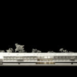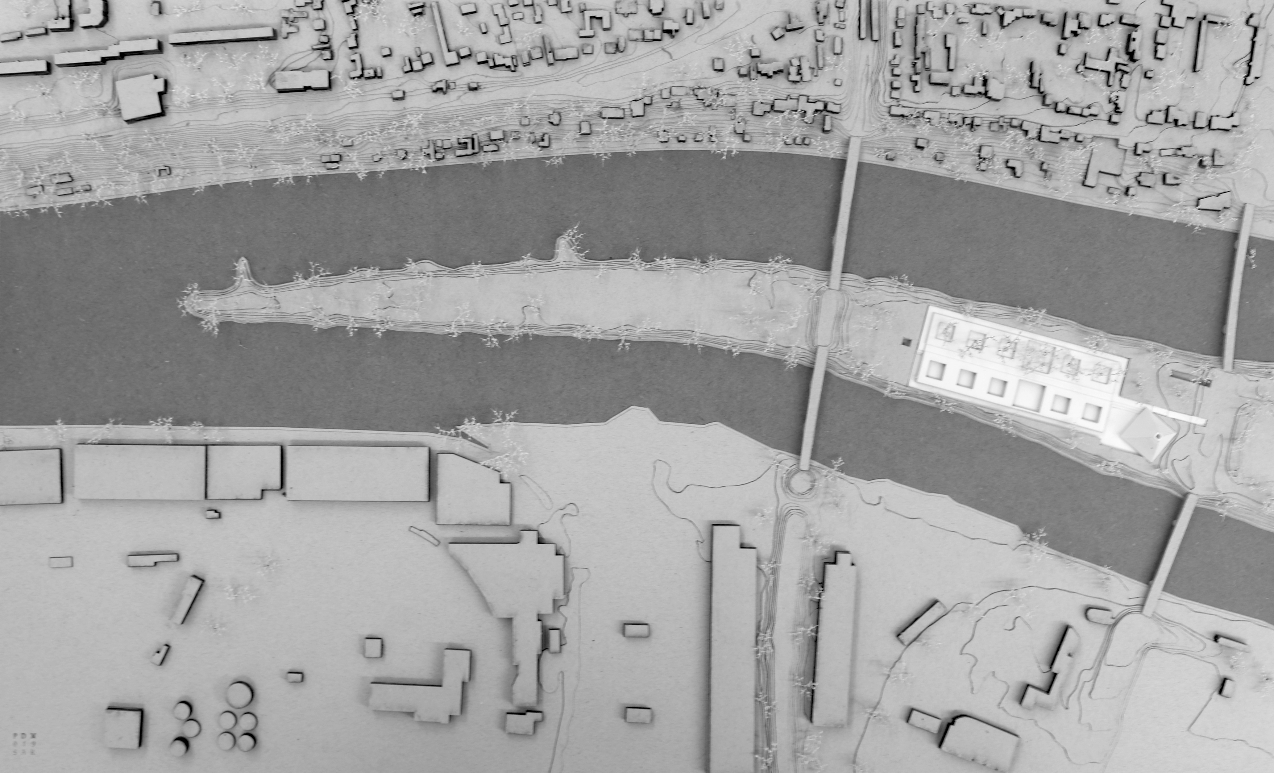 L’Ile-Saint-Denis est le berceau idéal de cette architecture d’état, implantée entre deux bras de la Seine et dans un tissu urbain décousu. Le complexe pénal devient le premier signal maritime avant l’arrivée sur la capitale, en proposant une architecture aussi ambivalente que ses fonctions sont contradictoires. A travers une implantation à la fois enterrée qui tait sa présence et une forme forte transplantant l’horizon, la fermeté de l’état s’embellit d’un altruisme mis en avant. Une vertu affichée, un mécanisme caché … La substitution de nos libertés instables pour la sécurité de l’obéissance propose une nouvelle devise au projet.