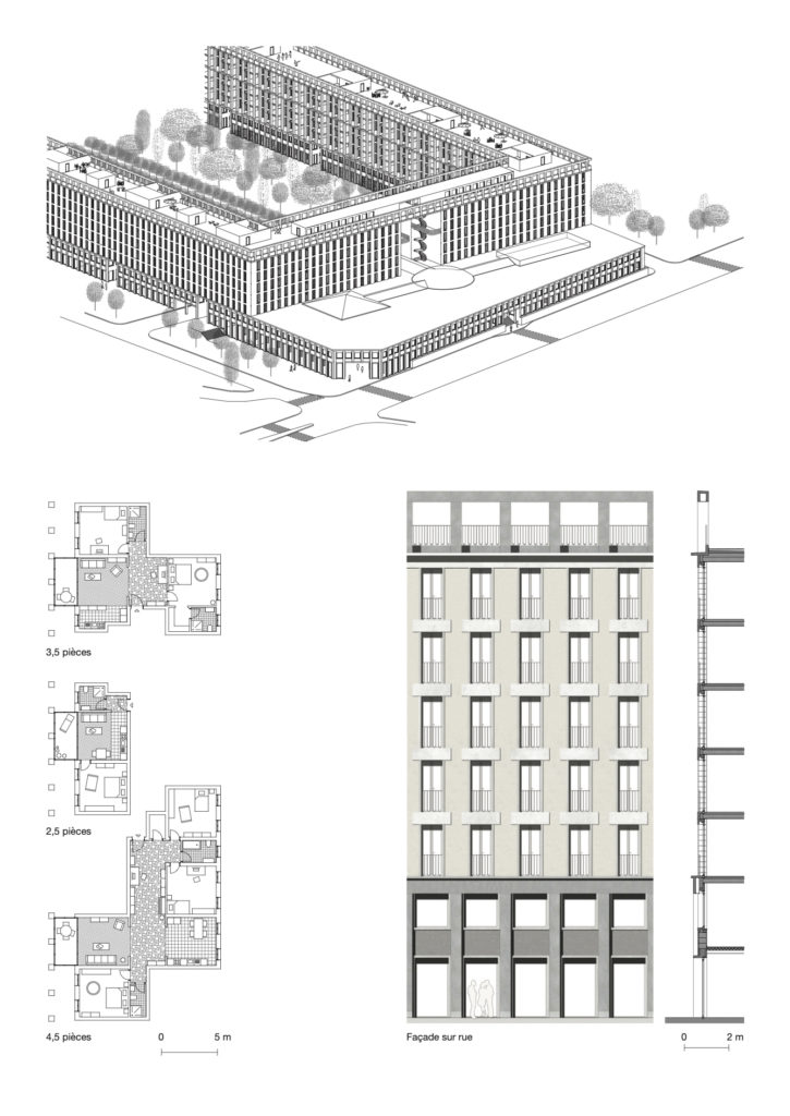 L’idée du projet est de concevoir un lieu dédié autant à la collectivité qu’à l’habitat individuel. Le choix d’une conception globale, allant du plan de quartier à la réalisation architecturale, ainsi que la forme unitaire du projet procurent une identité forte au nouveau quartier.