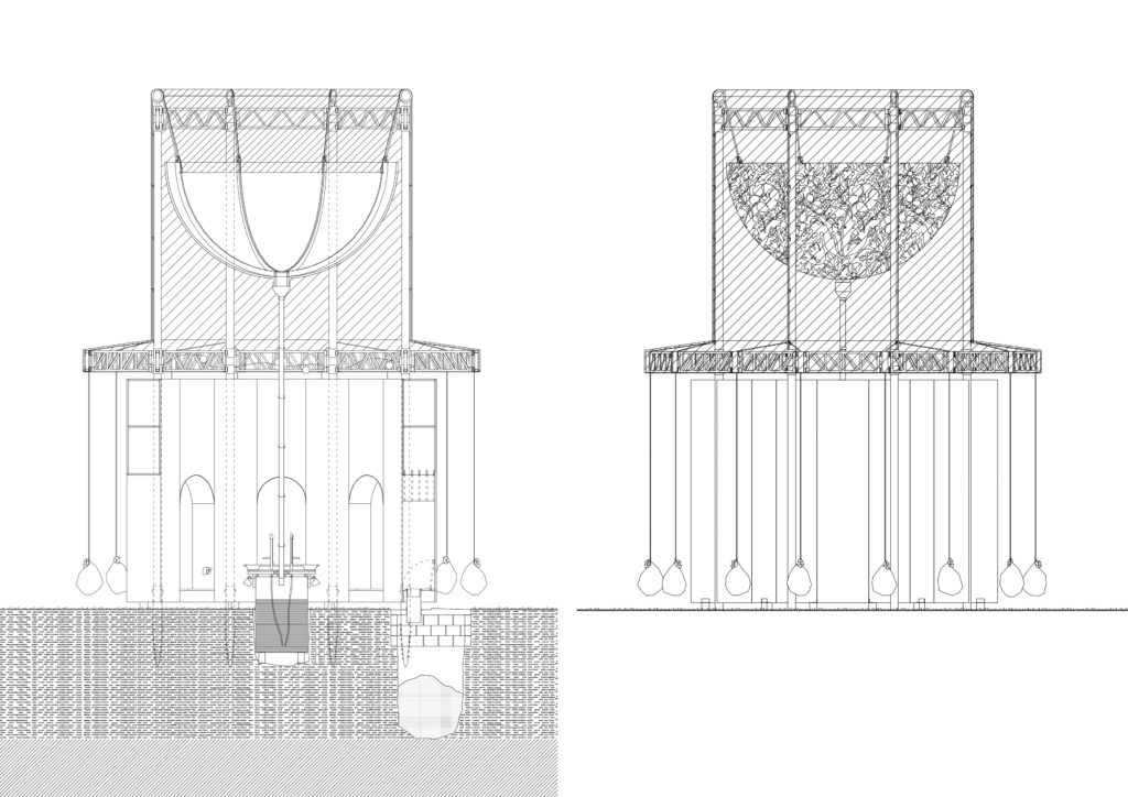 En proposant un mundus à Lausanne, le projet interroge les rapports que la ville a entretenu avec ses sols et souhaite débattre plus largement sur l’usage actuel des toilettes et de notre relation à l’environnement. Il formule une hypothèse poétique en travaillant avec la coïncidence des contraires. Le projet exprime simultanément une dimension sacrée et excrémentielle. Le mundus romain est traduit en temple-toilette par digestion conceptuelle du Tempietto de Bramante.